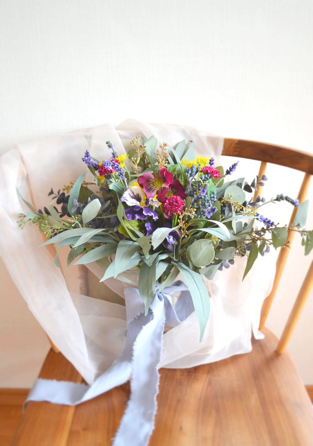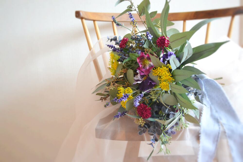 アーティフィシャルフラワーで作っておりますので、ウェディング後も お部屋に飾っていただけます。