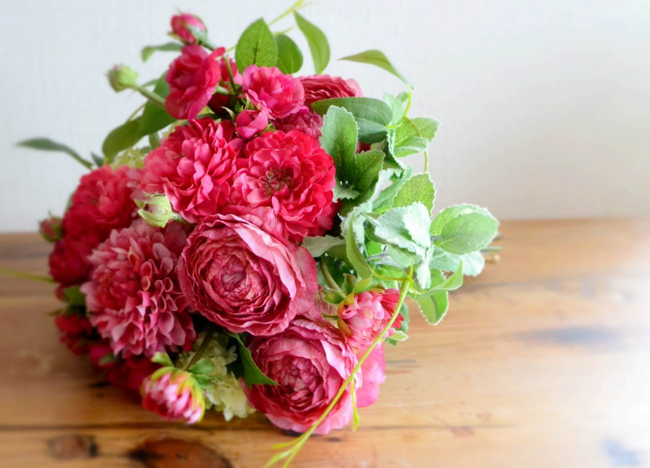 ピンクのダリアやラナンキュラスを使用した