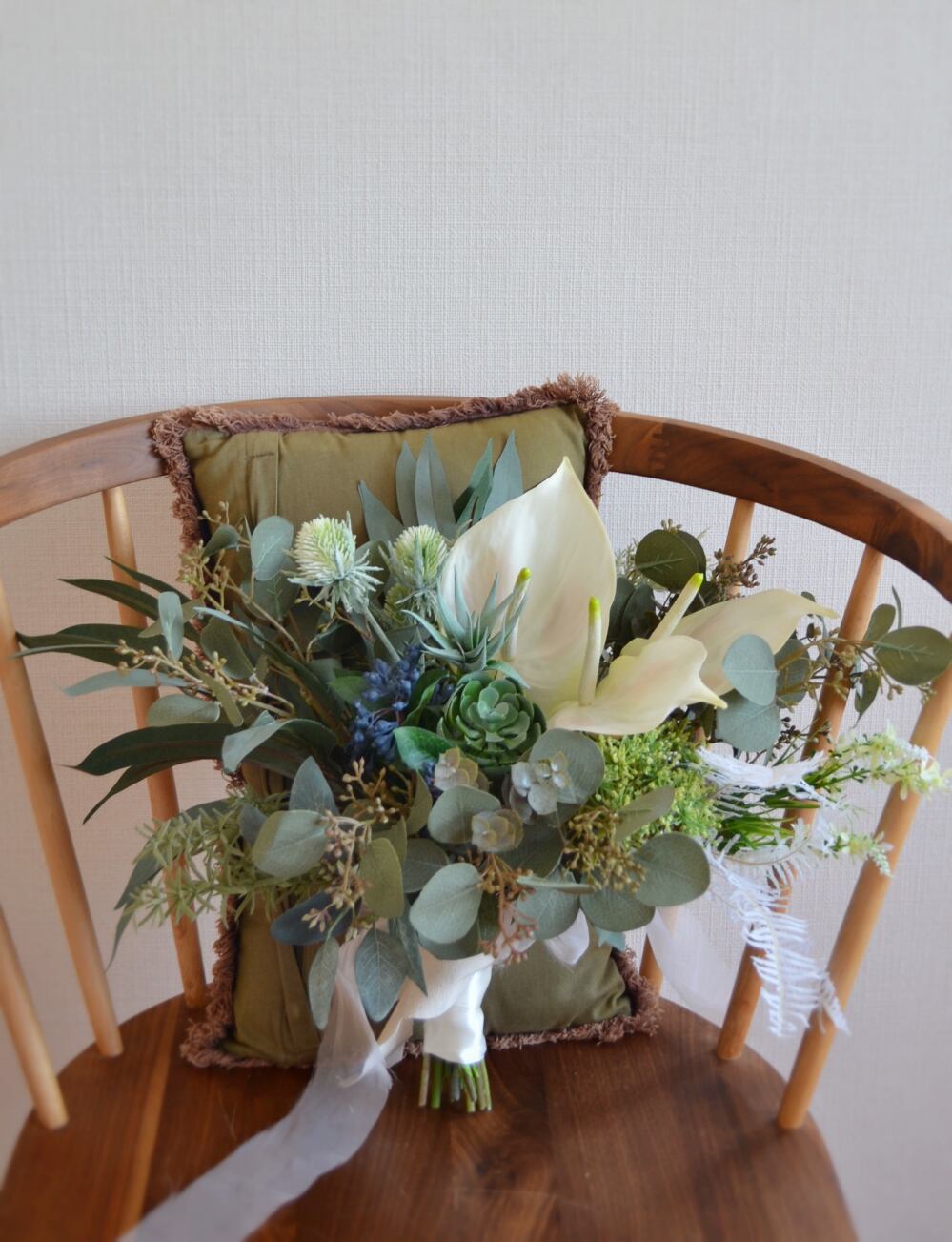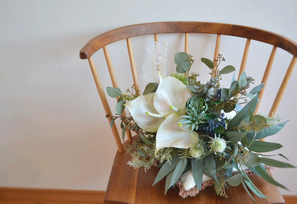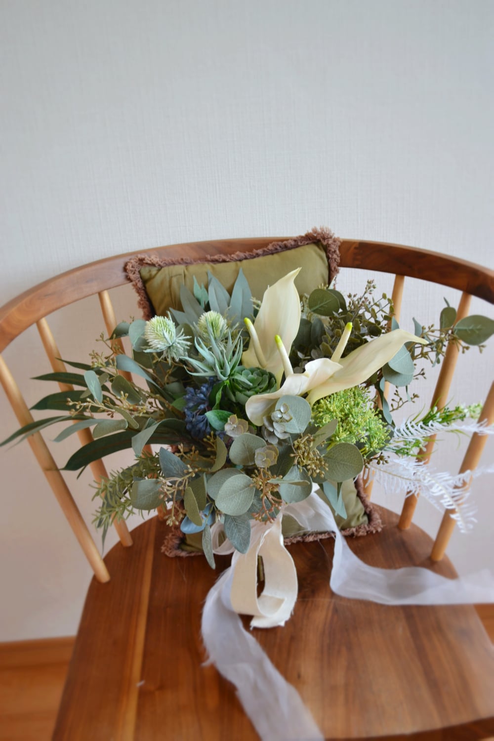 アーティフィシャルフラワーとドライフラワーで作っておりますので、ウェディング後も お部屋に飾っていただけます。